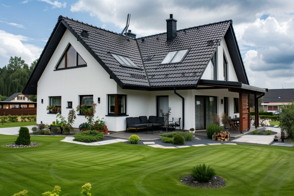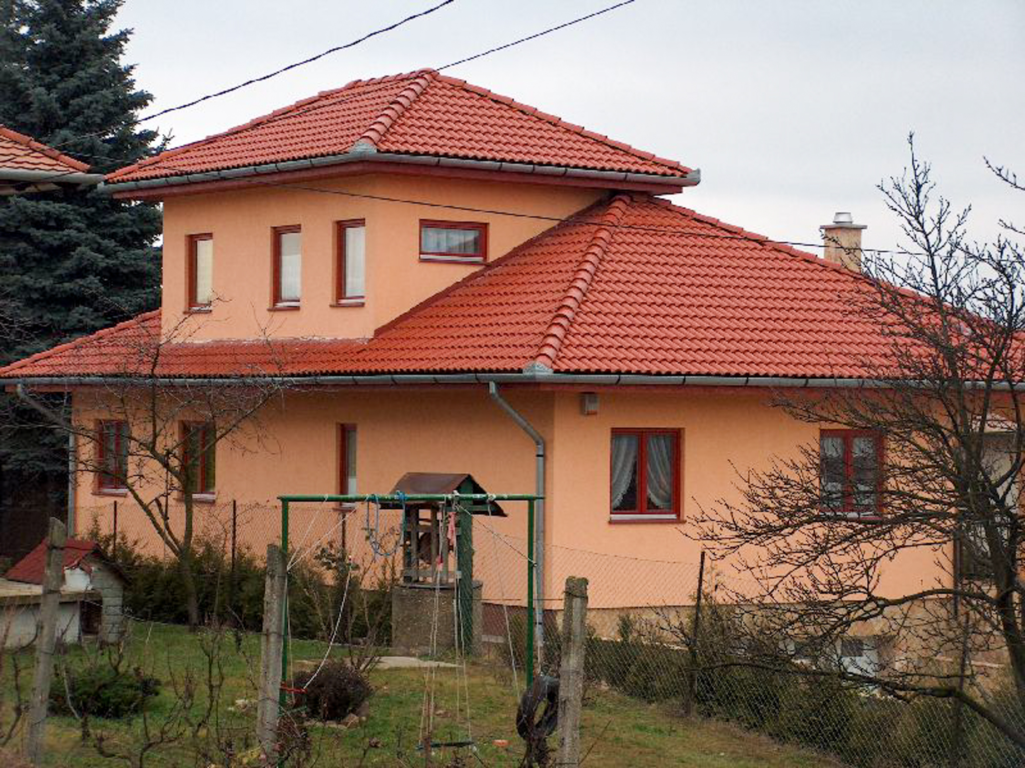 A tetőhéjazat alpkivitelű betoncserép, felár ellenében bármilyen tetőfedő anyaggal kivitelezhető.