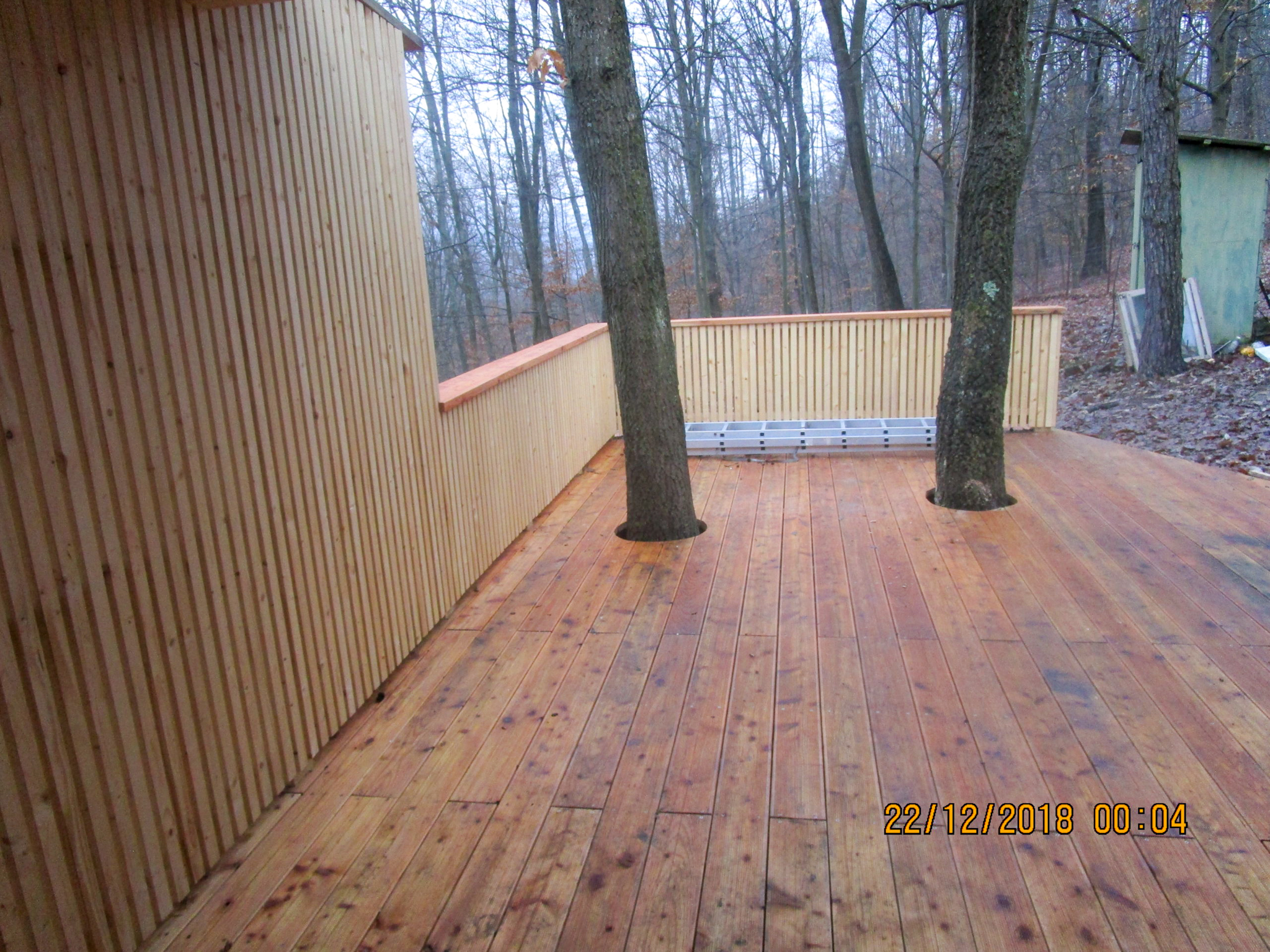 Fenyő fűrészárú a tervek valamint a statika szerint, a szarufákra tetőfólia van feszítve melyet ellenléc rögzít az ellenlécekre szögeződik a tetőléc. Az ereszkiállás 40cm amely fenyő lambériával van beburkolva. Minden beépített faanyag rovar és gombaölő szerrel van kezelve.